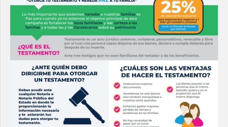 El Gobernador David Monreal Ávila enfatizó la importancia de aprovechar esta oportunidad en septiembre, mes tradicionalmente dedicado a fomentar la cultura testamentaria, y resaltó que Zacatecas será el primer estado en aplicar un descuento tan significativo, con “el objetivo de que más personas puedan acceder a este beneficio y prevenir complicaciones futuras”.