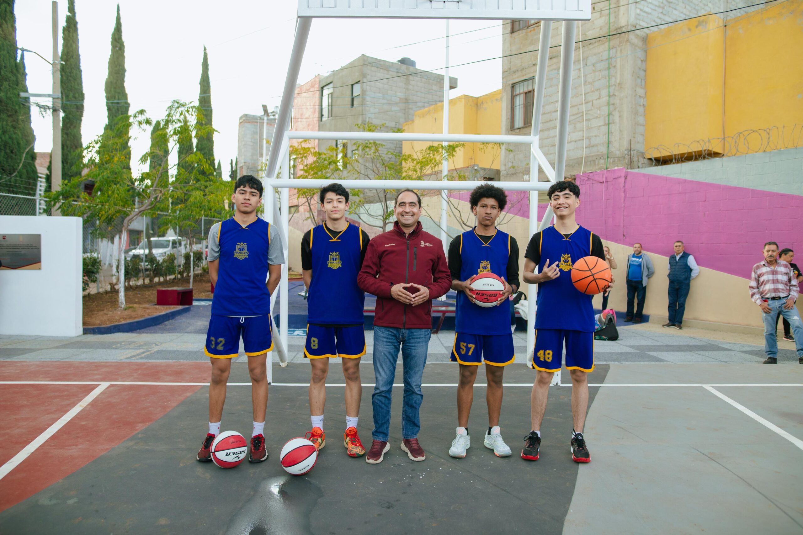 También acompañaron al alcalde guadalupense Saúl Cordero Becerril, diputado local, Analí Infante Morales, Síndica Municipal, Ángel Moroni López Gallego, Encargado de la Secretaría del Bienestar Social, Luis Ricardo García García, Secretario de Obras Públicas, Cruz Alberto Moreno Zarazúa, Director del Instituto Municipal del Deporte, Raúl Martínez, Presidente de la Liga de Basquetbol y José Cruz García Carrera, en representación de las y los beneficiarios.