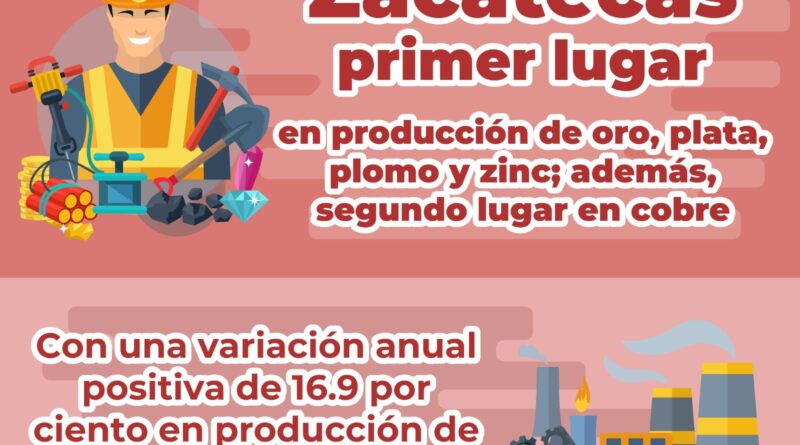 Zacatecas, Zac., 22 octubre de 2025.- Zacatecas continúa su consolidación como el corazón minero de México, al mantenerse como líder nacional en la producción de oro, plata, plomo y zinc, y ocupar el segundo lugar en cobre, de acuerdo con los datos más recientes publicados por el Instituto Nacional de Estadística y Geografía (INEGI), correspondientes a la producción minera de agosto de 2025.