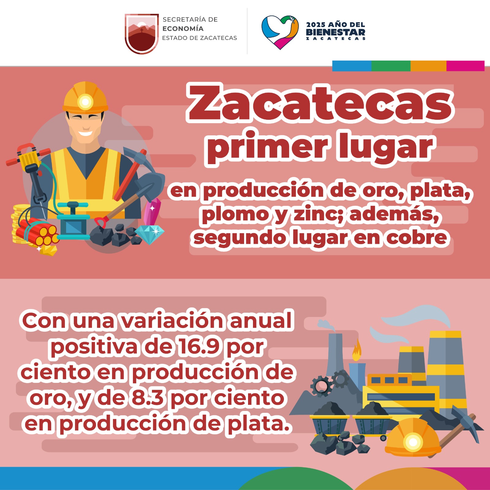 El estado registró una variación anual positiva de 16.9 por ciento en la producción de oro y de 8.3 por ciento en la producción de plata, con lo que consolida su liderazgo en metales preciosos, frente a entidades mineras como Sonora, Durango y Chihuahua.