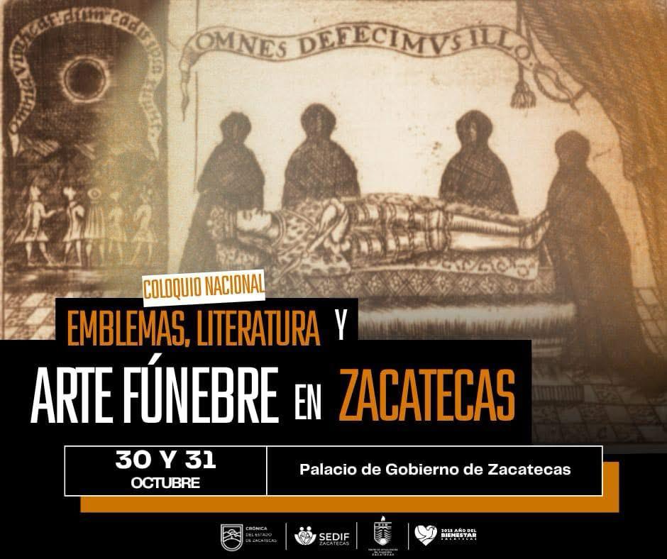 Zacatecas, Zac., 28 de octubre de 2025.- El Gobierno del Estado, que encabeza el mandatario David Monreal Ávila, a través de la Secretaría General de Gobierno y la Crónica del Estado llevará a cabo el Coloquio Nacional: Emblemas, Literatura y Arte Fúnebre en Zacatecas.