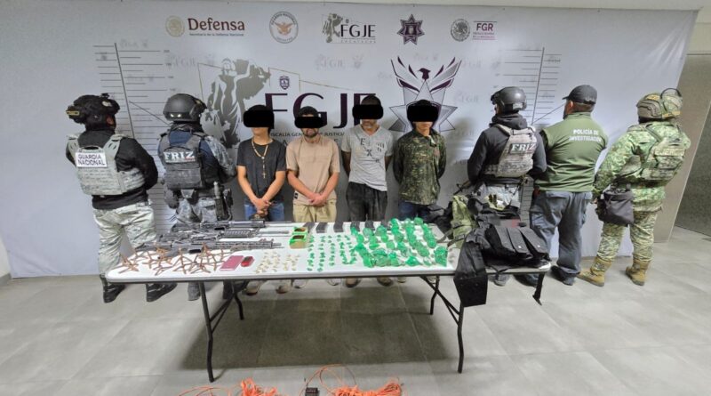 Zacatecas, Zac., 13 de febrero de 2026.– La Mesa Estatal de Construcción de Paz y Seguridad informa que, tras la agresión registrada este jueves en el municipio de Villanueva, fue desarticulada una célula delictiva que operaba en la región, mediante un operativo coordinado que permitió la detención de cuatro masculinos, entre ellos el jefe de plaza.