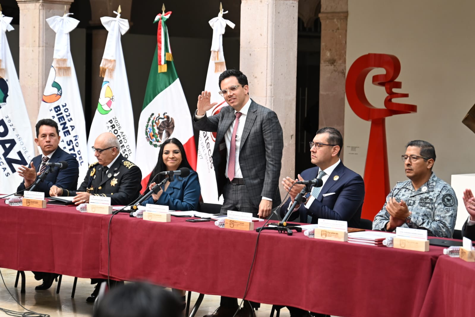 Además, el General Arturo Media Mayoral, secretario de Seguridad Pública; Thomas Favennec, director ejecutivo de LabCo; Silvia Patricia Chica, directora Ejecutiva del Instituto Mexicano de Derechos Humanos y Democracia; Maricela Dimas, presidenta de la Comisión de Derechos Humanos del Estado de Zacatecas, así como funcionarios federales y estatales.